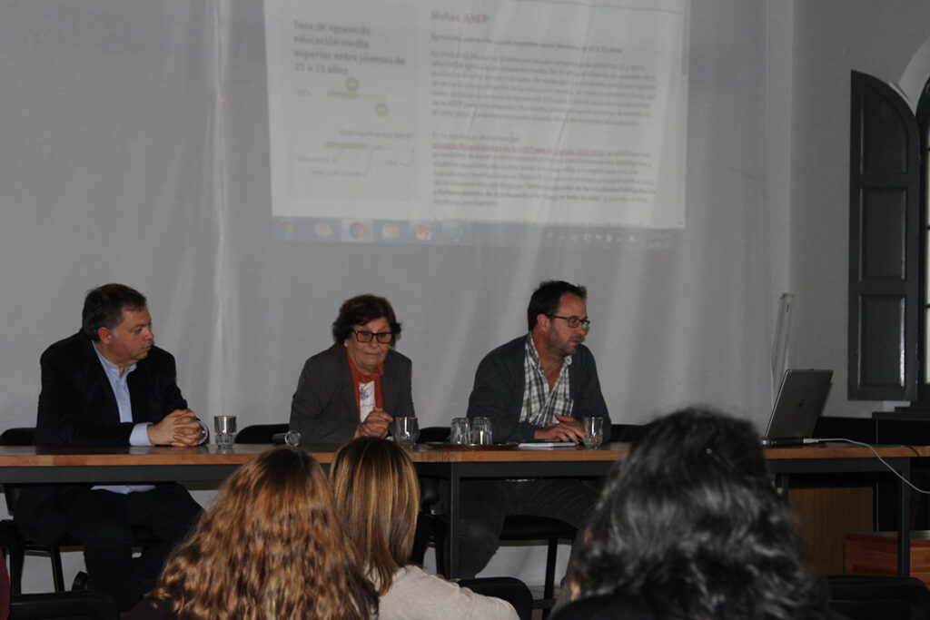 Posteriormente, Rodríguez presentó el contenido y la estructura del Mirador Educativo, un portal que permite acceder a información sobre el estado de la enseñanza obligatoria en Uruguay y el nivel de cumplimiento de las metas educativas que el país se ha propuesto.