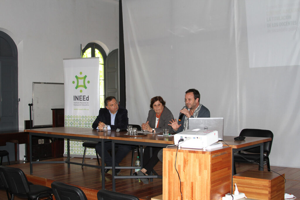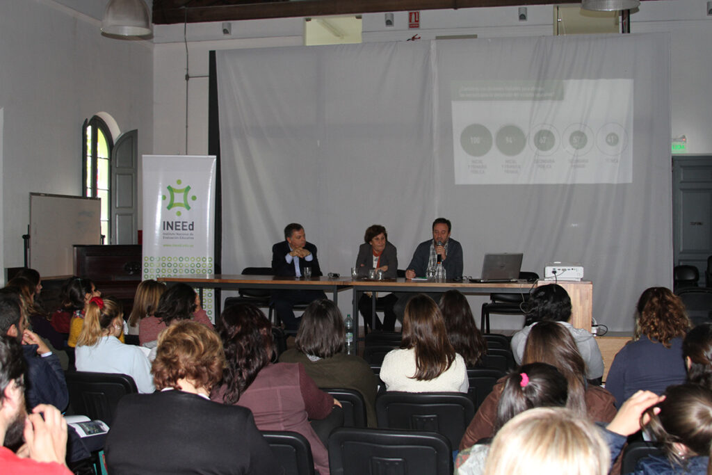 El director de nuestra Unidad de Estudios e Indicadores, Federico Rodríguez, realizó un repaso de las diferentes dimensiones que componen el Informe sobre el estado de la educación en Uruguay 2015-2016: acceso, avance y egreso de los alumnos en el sistema educativo obligatorio; logros de aprendizaje; formación, condiciones laborales y desarrollo profesional de los docentes; y recursos asignados a la enseñanza.